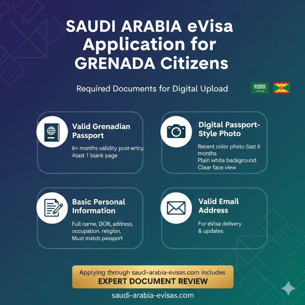 The procedure of getting travel permits to Riyadh, Jeddah, and Dammam or the sacred cities is simplified and fully computerized to the citizens of Grenada. It is an ultimate guide to all that Grenadian passport holders should know about the Saudi Arabia eVisa for Grenada Citizens, including what this visa entails, who can obtain it, what documents they need, and so on, so that it becomes the smartest first step in the process of traveling.