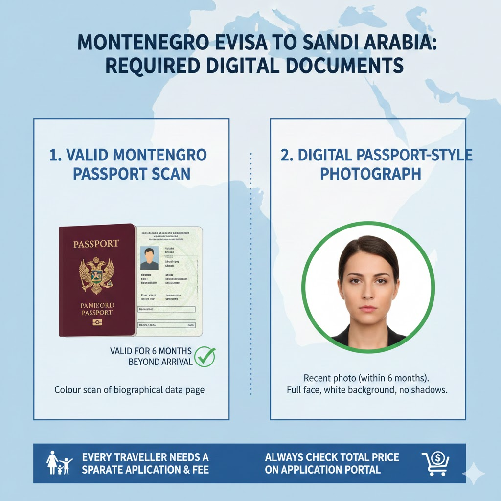 The eVisa application process is almost entirely paperless, requiring applicants to upload only a few essential digital documents. Montenegrin applicants should prepare the following: