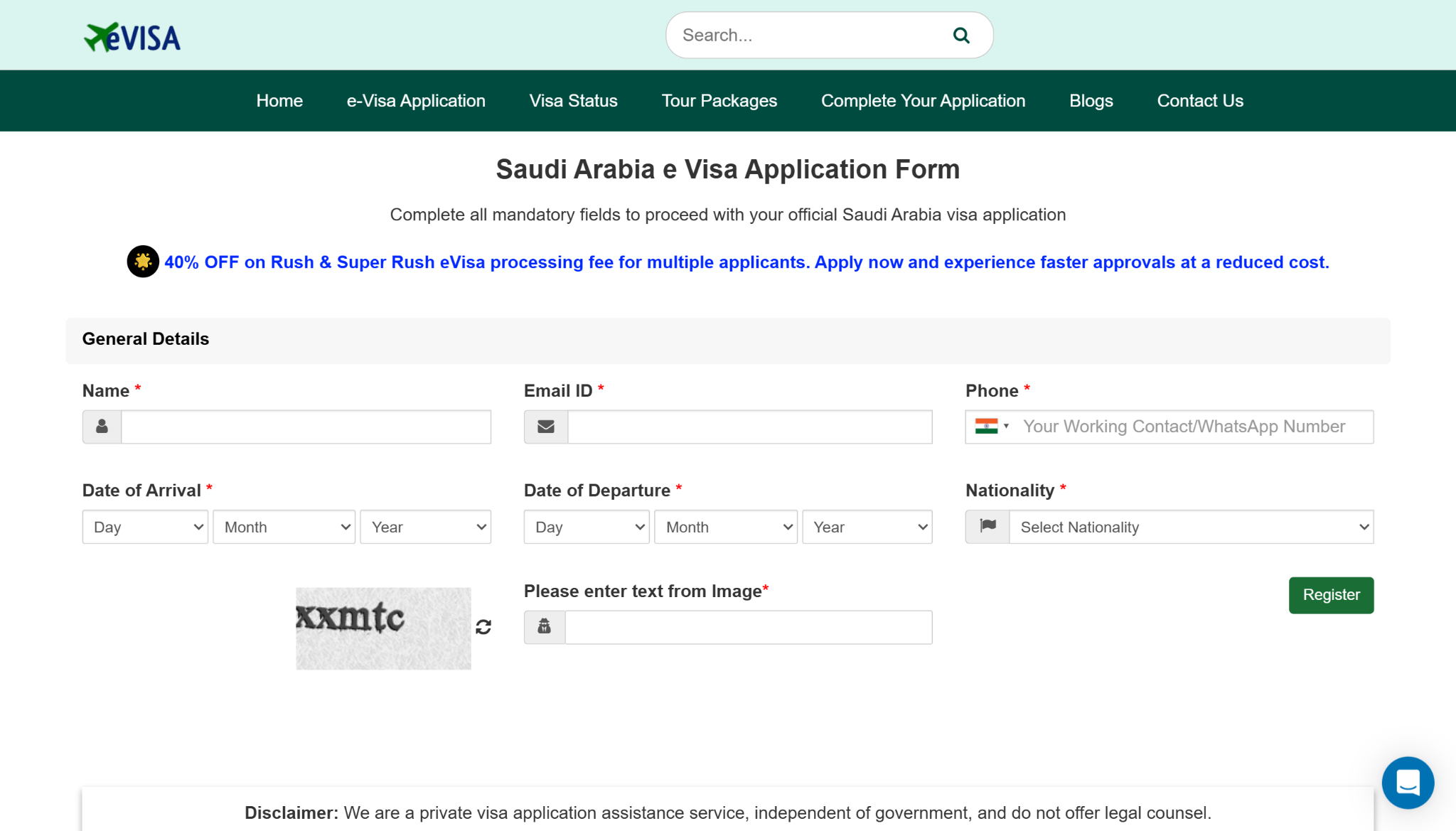 STEP 1 : Visit the Saudi eVisa website and fill in your personal, travel, and passport details accurately.