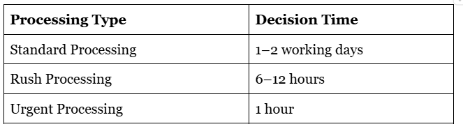 Saudi Arabia provides flexible eVisa processing options, allowing travelers to choose their preferred speed based on how urgently they need visa approval.