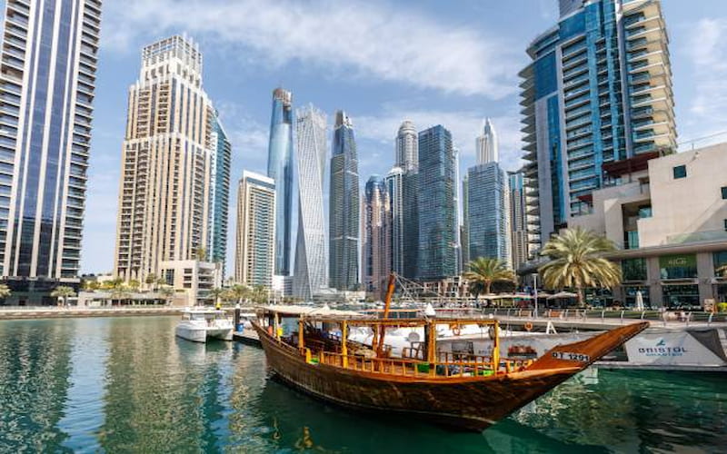 Passengers on the dhow get to see Dubai Marinaââ¬â¢s lit up skyline, as the dhow glides through the tranquil waters. Notable such as the twisted Cayan Tower and magnificent waterfront residences it makes a beautiful backdrop. City lights reflected on the water add to the enchanting experience, and it is a perfect way to appreciate Dubaiââ¬â¢s architectural marvels from a different perspective.