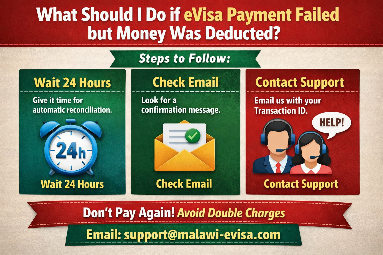 - Contact Support: Do not attempt a second payment immediately to avoid double charges. Reach out to malawi-evisa.com with your transaction ID, and our team will manually verify the status with the immigration department.
