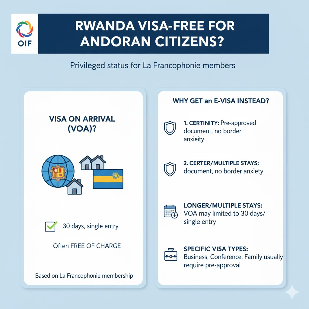 This is a common question. As a member of the Organisation internationale de la Francophonie (OIF), Andorra enjoys a privileged status in Rwanda.