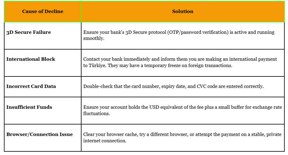 A payment failure is common and is usually due to security settings, not issues with your application data. Here are the most likely causes and solutions: