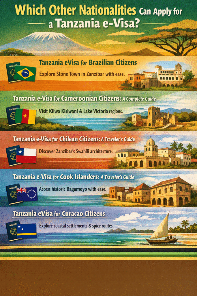 The Tanzania e-Visa for Chilean Citizens: A Traveler's Guide supports travel to Zanzibar’s old towns, ancient ports, and historic Swahili architecture. Chilean travelers can apply online and prepare for a journey filled with culture and history.