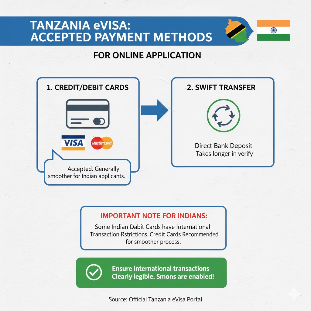 The online system allows you to pay Tanzania Visa Fee via: