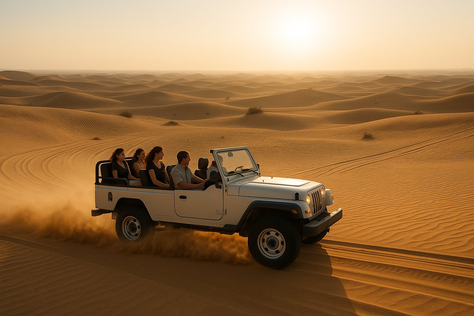 A white 4x4 SUV roars across the golden dunes, sand swirling into the air as adrenaline surges through every turn â welcome to your Desert Safari Drive! Whether youâre chasing the thrill of dune bashing or seeking tranquil desert sunsets, Forever Tourism brings you Dubaiâs most unforgettable adventures.