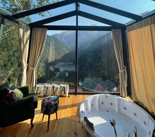 Hidden in the green highlands of Trabzon, these wooden bungalows offer a magical experience amidst foggy forests and fresh mountain air. The Black Seaâs untouched nature and hospitality make this a perfect destination for an imaginary getaway.
