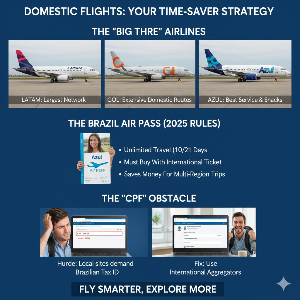 Azul has revitalized the air pass concept. If you plan to visit multiple regions (e.g., Rio -> Iguazu -> Amazon), this can save you money.