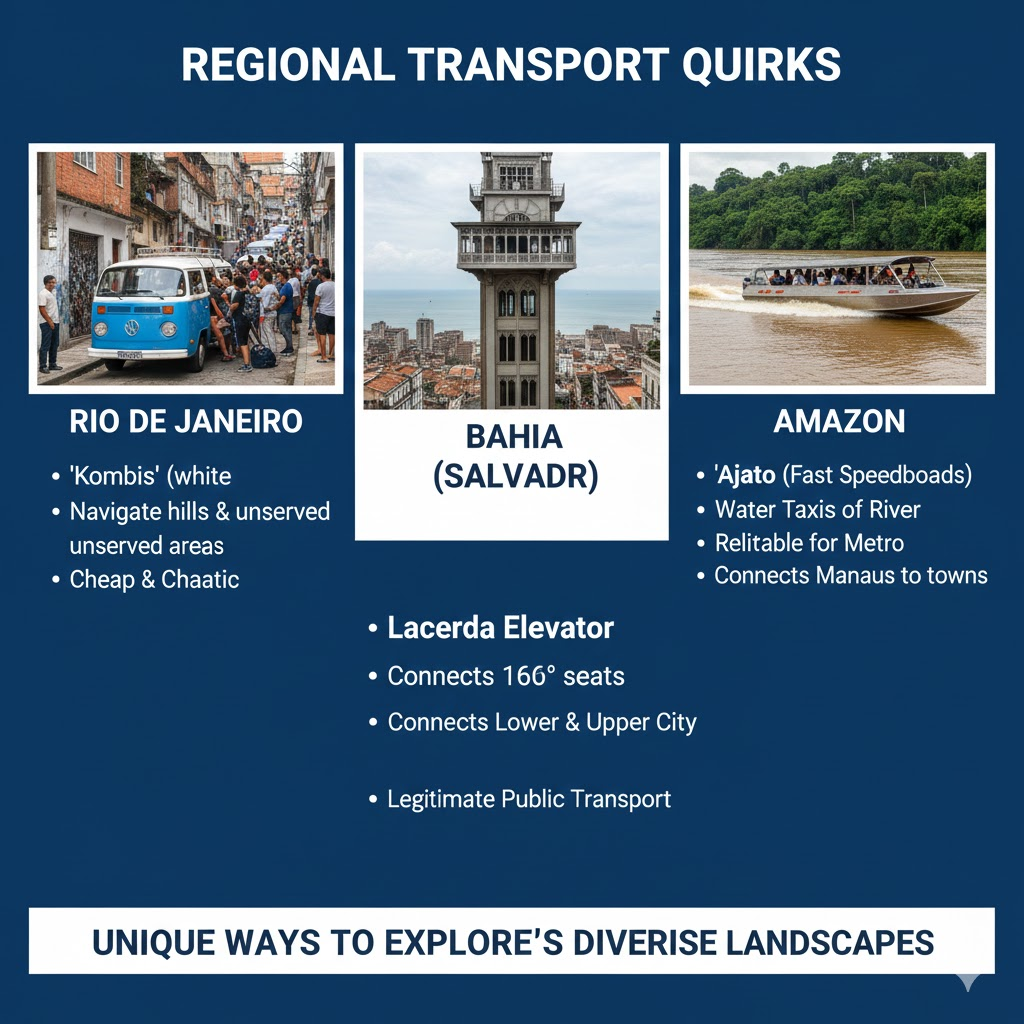 - Rio de Janeiro: "Kombis" (white vans) are a common way to get up hills or into neighborhoods not served by buses. They are cheap but can be chaotic.