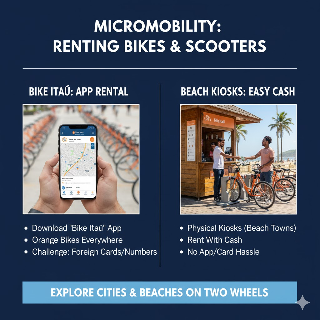 - The Alternative: In beach towns like Ipanema, you can rent bikes from physical kiosks on the boardwalk using cash, avoiding the app hassle entirely.