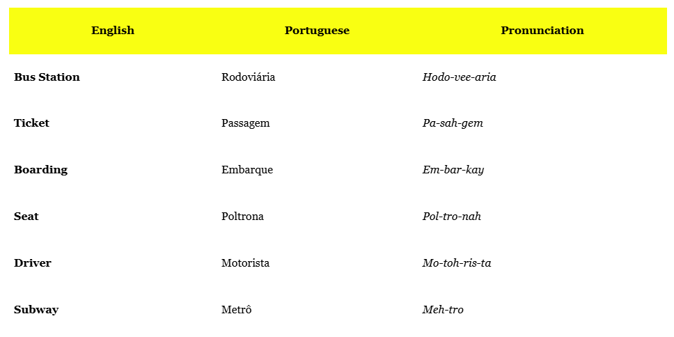 Essential Portuguese Glossary for Transport