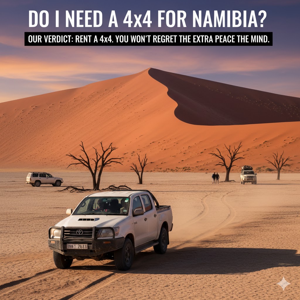 For this specific itinerary, a 4x4 is highly recommended, though not strictly mandatory for all parts. Most of your driving will be on well-maintained gravel roads (called "C" and "D" roads). A 2WD (sedan-style) car can manage, but it will be slower and less comfortable.