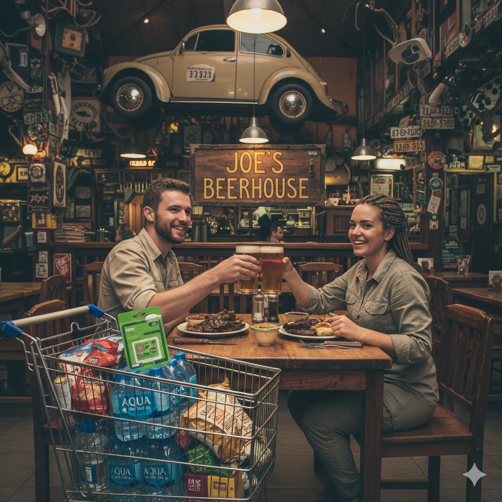 Your goal today is preparation. Head to a supermarket (Maerua Mall or The Grove Mall) and stock up on essentials:
