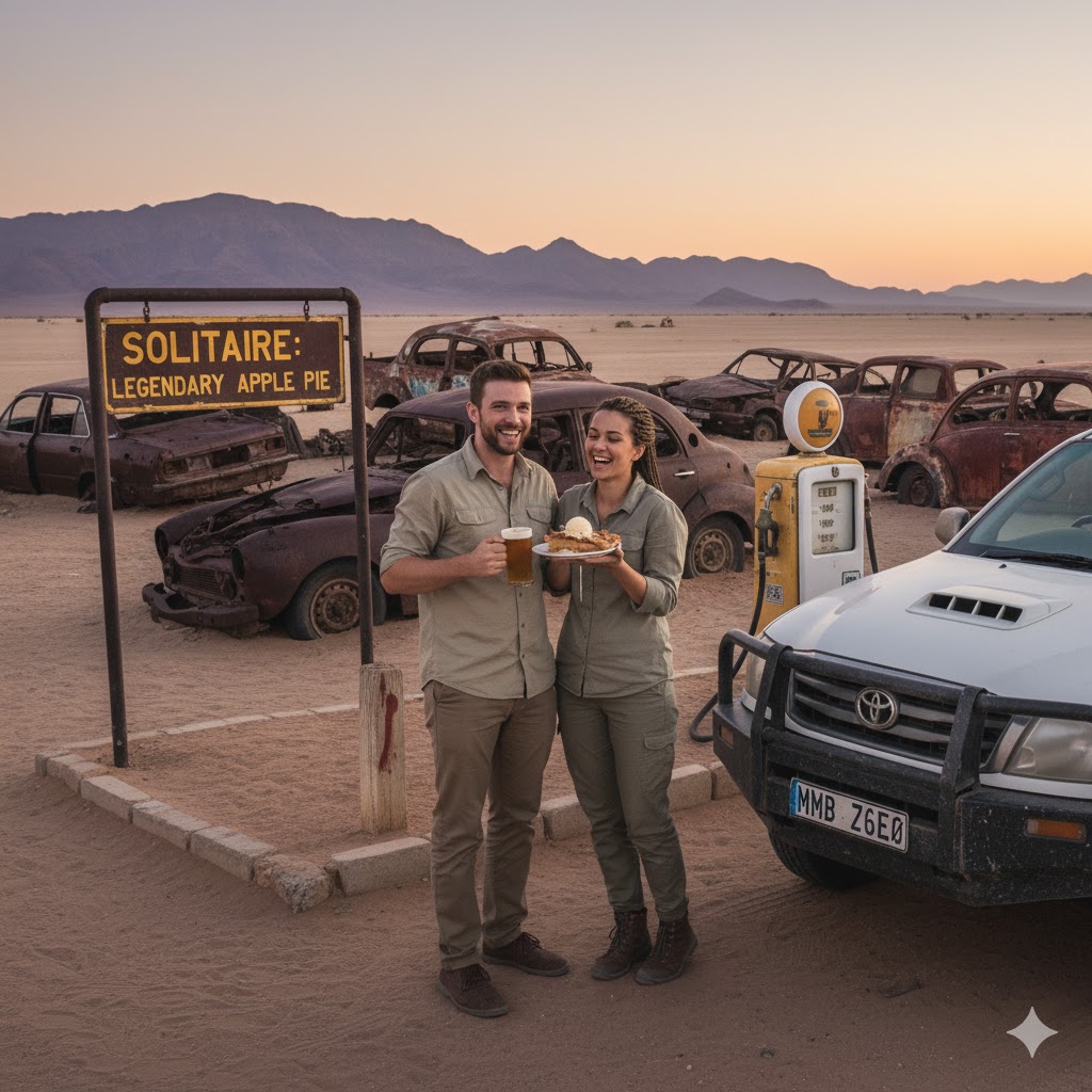 Hit the road early. The drive south takes you from cityscapes to vast, empty desert plains. You'll pass through the small, quirky outpost of Solitaire, a one-stop-shop famous for its post-apocalyptic car graveyard and its legendary apple pie. Stop, refuel, and grab a slice.