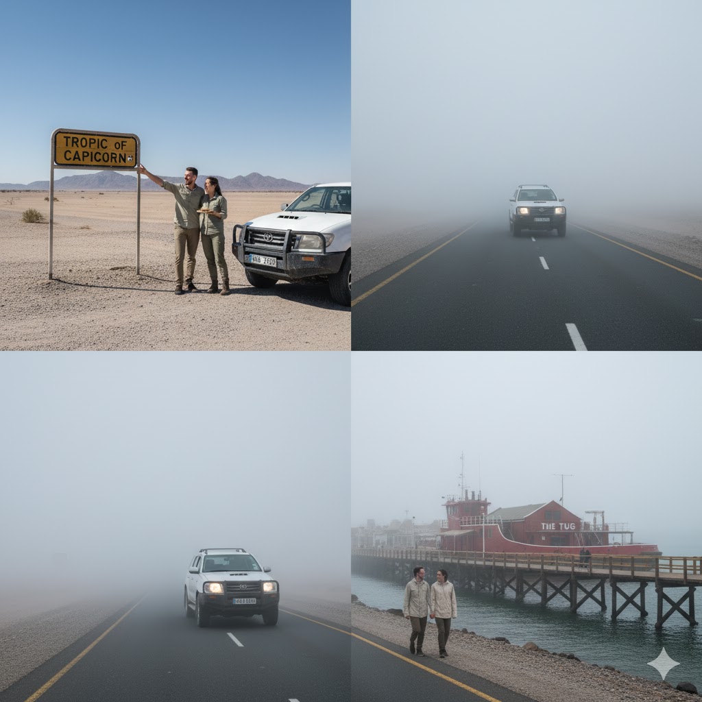 Today, you drive west, crossing the Tropic of Capricorn (stop for the photo!) and the barren expanse of the Namib Desert. As you approach the coast, the temperature will plummet, and the dry desert air will be replaced by cool, misty sea fog.