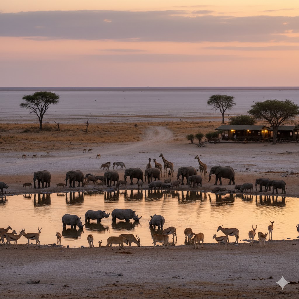 Today you drive to Namibiaââ¬â¢s premier wildlife destination: Etosha National Park. Check into your rest campââ¬âOkaukuejo is the most famous for its floodlit waterhole.