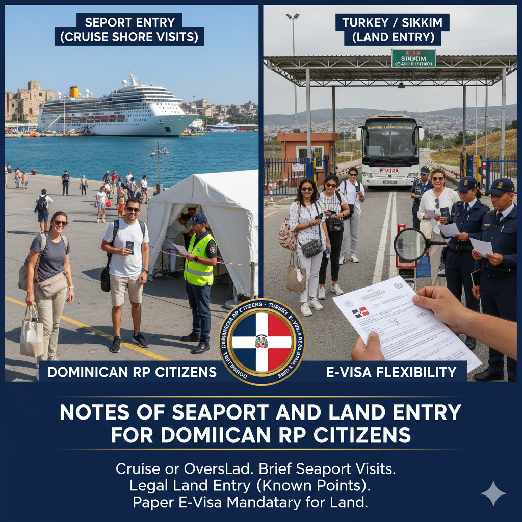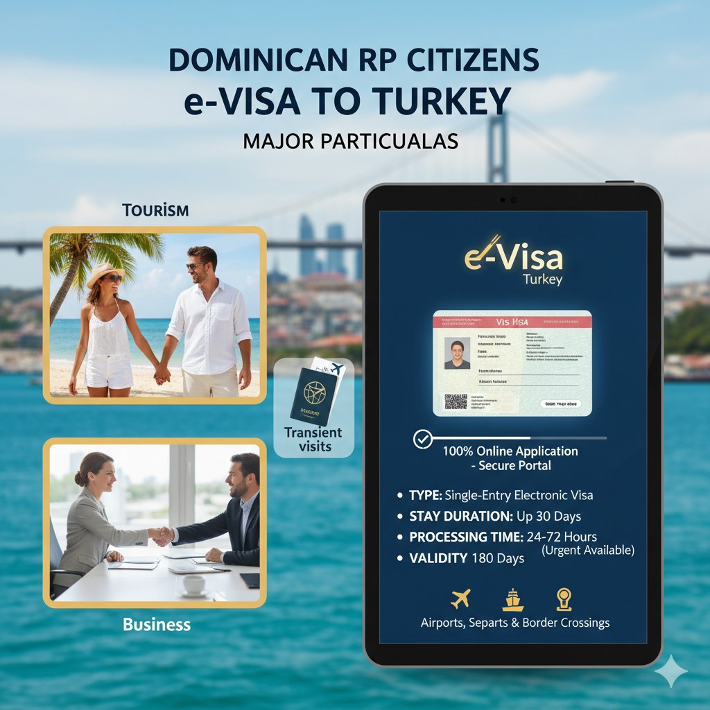 Dominican RP citizens who come by cruise or overland will be able to use their Turkey e-Visa in the following terms: