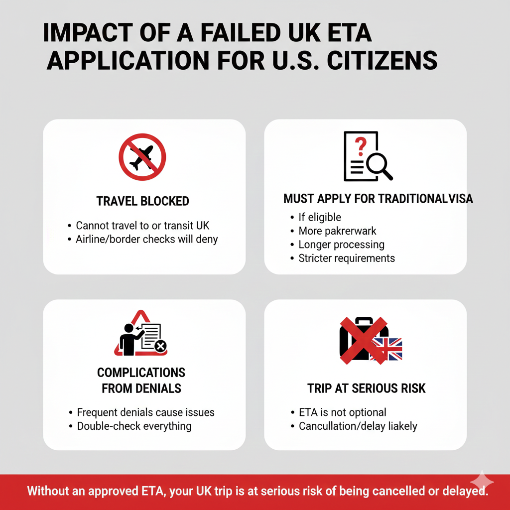 In other words: don’t treat ETA as optional. Without an approved ETA, your UK trip is at serious risk of being cancelled or delayed.