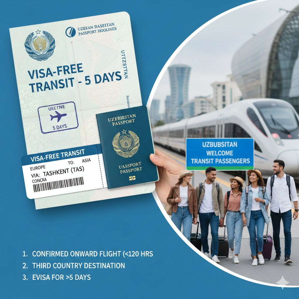 Yes. If you are flying through Uzbekistan to a third destination (e.g., traveling from Europe to Asia), you may be eligible for 5-day visa-free transit.