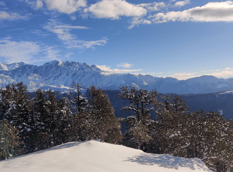 Brahmatal offers a classic winter landscape that makes it one of the most accessible Himalayan treks during the snowy months. The trail brings you into a world of white-covered forests, open meadows, and gentle slopes that stay snow-clad throughout the season. Unlike many high-altitude winter treks where the terrain becomes extremely difficult, Brahmatal maintains a steady gradient, making it suitable for first-time trekkers while still being enjoyable for experienced ones. The crisp winter air, soft snow under your feet, and peaceful surroundings create a soothing atmosphere from the very beginning. Trekkers often describe the environment as calm and comforting, making it the perfect winter introduction to the Himalayas.