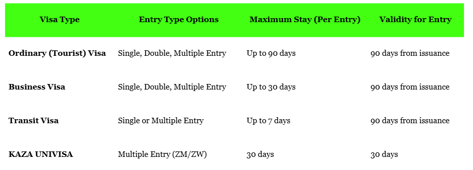 The Zambian eVisa system offers great flexibility to suit different travel needs: