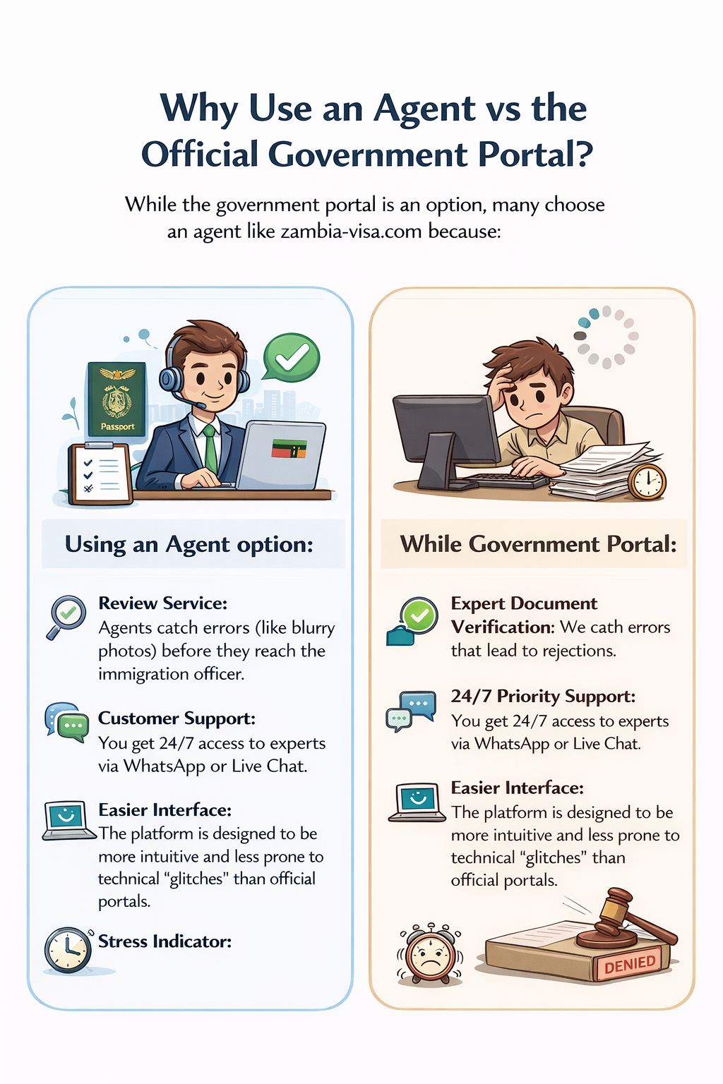 While the government portal is an option, many choose an agent like zambia-visa.com because: