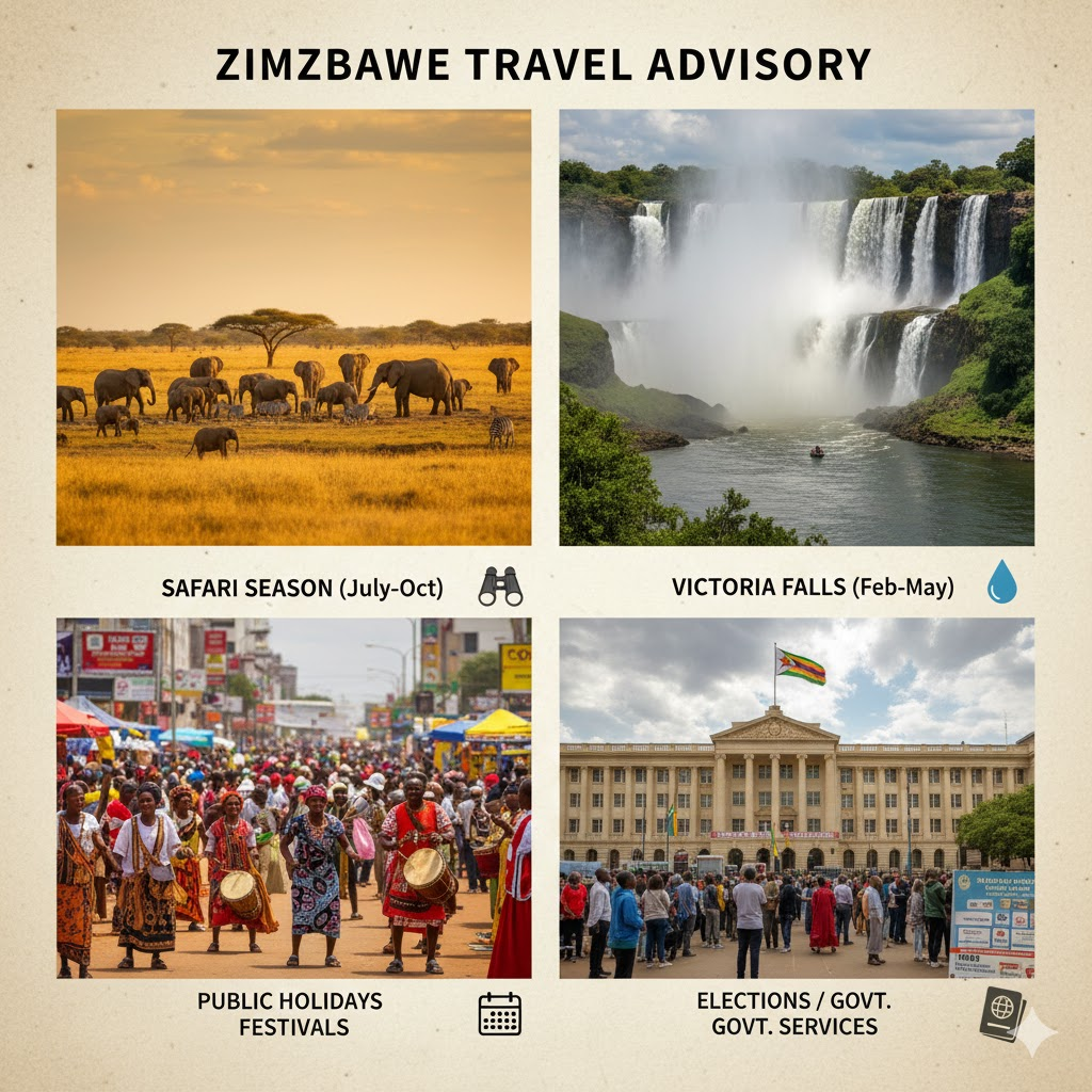 Zimbabwe is a year-round destination, but seasonal factors matter: